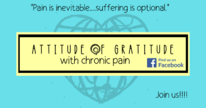 If you aren’t already a member of our beautiful community on Facebook, we would love to have you! “Attitude of Gratitude with Chronic Pain” is a group of thousands of others LIKE YOU who choose to work to look at their struggles through the lens of GRATITUDE to have a fulfilling and joyful life. JOIN US!